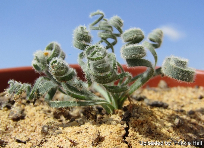 Waterings: Water sparingly when growing and a little care, it is a definite water-wise species. The curling of the leaf tips is largely dependent on weather conditions. Cool dry conditions encourage the leaf tips to curl, while warm most conditions tends to encourage erect, straight, uncurled leaf tips. When flowers begin to appear, water should be withheld in order to avoid rot. If the plants are allowed to dry too much, they will go dormant.
