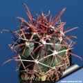 grows slowly, forming in age a mound of thorns and then a narrow column up to 2m tall, with attractive curved spines that partly obscure the green stem. The spine colour is red but also yellow or pale grey.