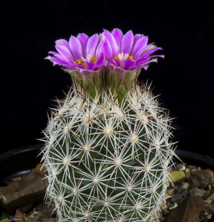 Spines: All radial grey-white with brown or black tips. About 1 mm long, lower ones 4-6 mm long, upper ones 10-14 mm long. Upper radial spines near the plant apex are very dense and may look like central spines.