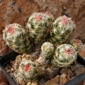 Description: It is a tiny cactus with rounded, single stems up to 2,5cm tall and 6-17 mm wide, occasionally with a short tap root; tubercles 2 to 4 mm wide. A cultivated plant can be slightly larger, and clumped .