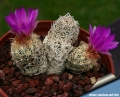 Description: It is a tiny cactus with rounded, single stems up to 2,5cm tall and 6-17 mm wide, occasionally with a short tap root; tubercles 2 to 4 mm wide. A cultivated plant can be slightly larger, and clumped .