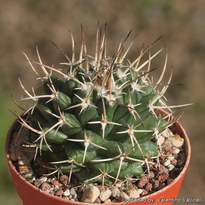 Mammillaria tolimensis R.T.Craig: Stem up to 10 cm across, grey to yellowish green and forming suckers. Spines creamy-white to 5-6 cm long. Distribution: Santa María del Mexicano, between Bernal and Toliman, QRO, Mexico.