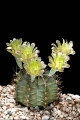 Description: The plant is considered to be a miniature cactus. It only grows to be 4 cm high and has a 5-6 cm diameter. The not fully opening flowers of this species have a silky appearance and range from pale green to brownish-yellow. It has wider, lower ribs, in juvenile plants divided into separate chins, in maturity every rib have flat surface and a pleat above each areole.
