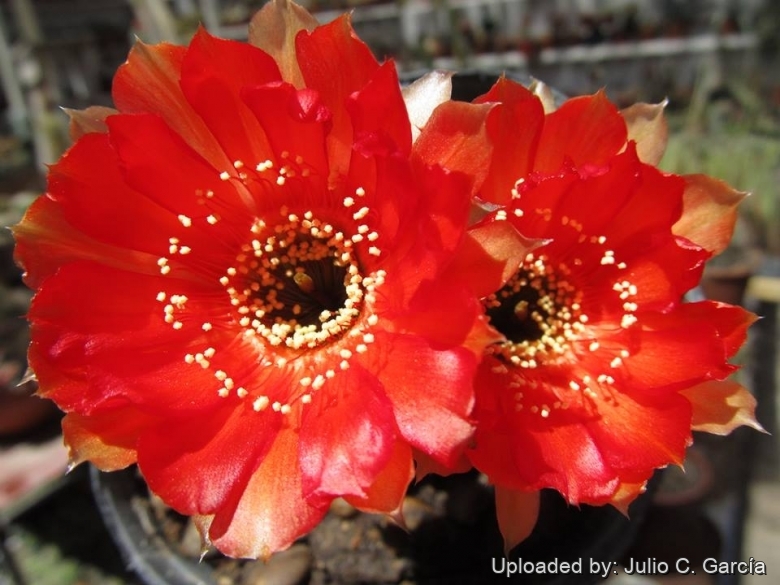 Echinopsis amblayensis (Rausch) Friedrich: has rich orange-red flowers and green stigmas. Distribution: Amblayo, Salta, Argentina.