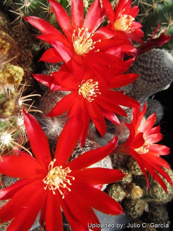 - KK849 Jucanas, Tarija, Bolivia 2800m During the blooming time a multitude of bright red flowers nearly cover the plants. (Rebutia densipectinata KK849 Jucanas, Tarija, Bolivia 2800m (3000m)) Photo by: Valentino Vallicelli