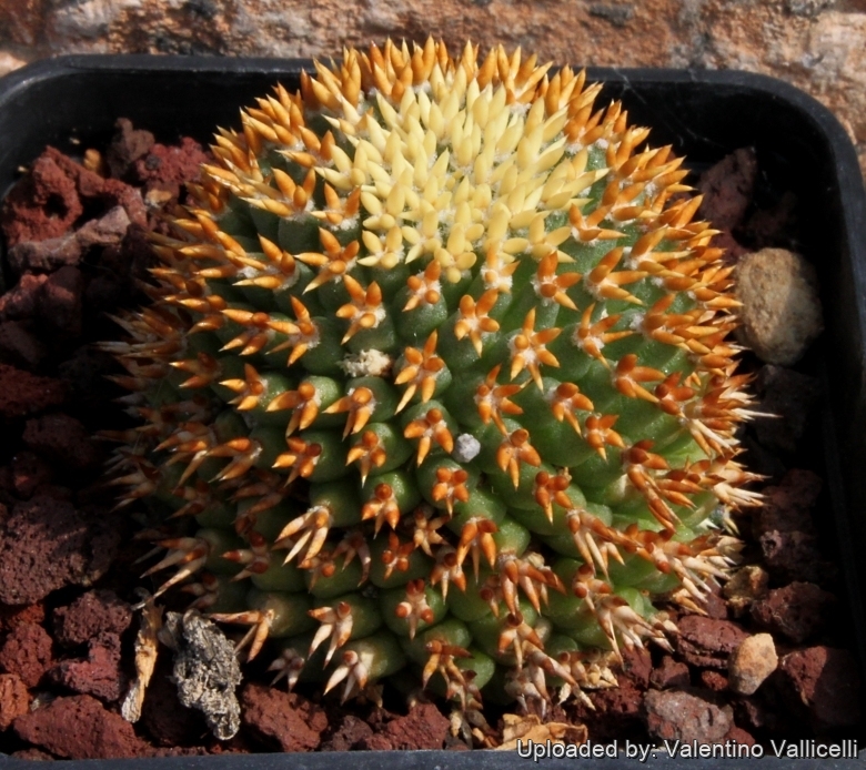 Very nice form with 4 to 5(-6) very short orangish radial spines. The younger spines are yellow and very attractive.