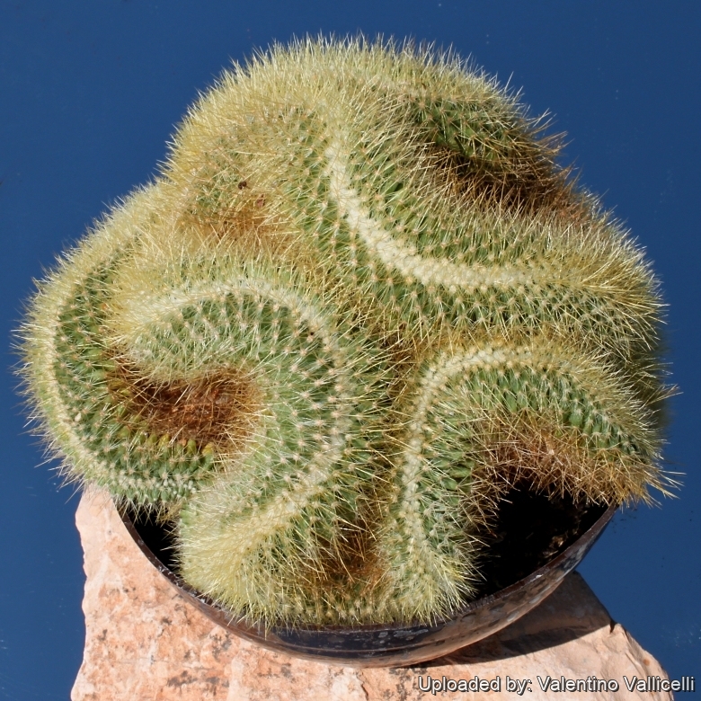 The crested form is a golden-yellow spined treasure that forms superb brain-shaped mounds up to 50 cm wide. And one of the showiest crested cacti. A real traffic stopper!
