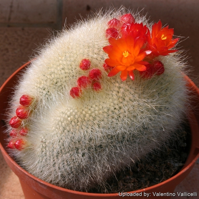 The nice and rare crested form. It is a very popular cactus with silvery white spines. It is a heavy bloomer that can sport showy deep orange flowers for a long period of time.