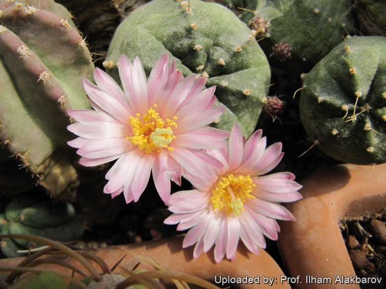 Flowers: Pink or white funnel-shaped flowers, 2.5-4 cm long, up to 6 cm in diameter, appearance in spring and summer. Flowers push through the body from the crown.