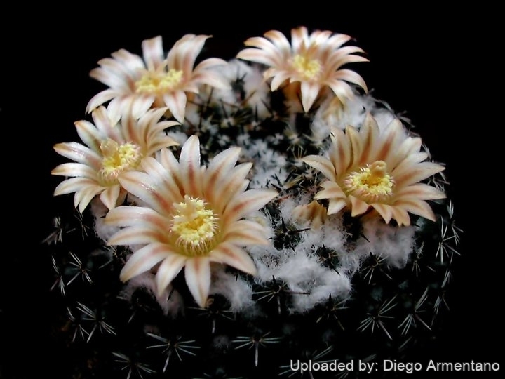 Propagation: It is best propagated from seed. Seed readily germinates at 20°-22°C, or by offsets if available. The white wool between the areoles makes this species a pleasure to look at and grow, but the diversity among individual specimens is considerable and the best plants have abundant white axillary wool. Hence, it is worth raising a batch of seedlings and selecting one or two that have the most wool.