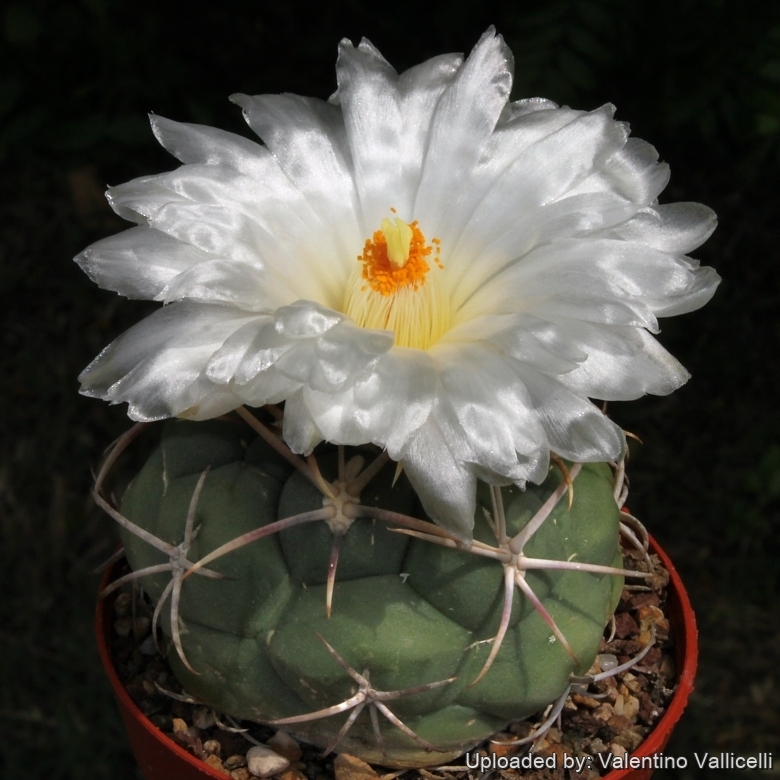 Description: Thelocactus hexaedrophorusSN|10830]]SN|10830]] subs. lloydii f. major is one of the old controversial geographical or morphological forms of the variable Thelocactus hexaedrophorusSN|10830]]SN|10830]] that distinguishes from the standard species for the very long ( up to 8 cm long) central spines, more numerous (6-8) reddish white to brownish radials, and bright white flower. However it look very similar to other varieties of Thelocactus hexaedrophorusSN|10830]]SN|10830]] which are linked one to each others by populations of plants with intermediate characteristics. Due to the species variability it seems not justified to recognise this subspecies. Nowadays all this forms are thought to belong to a unique polymorphic species.
