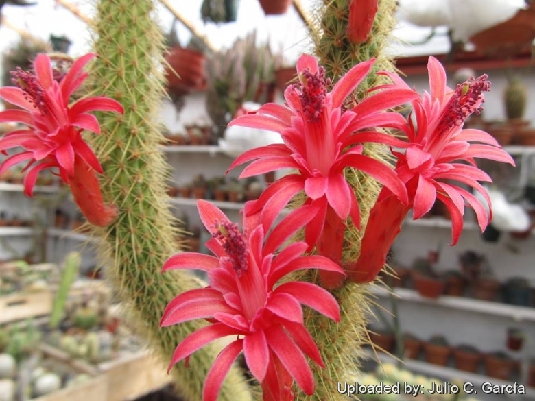 Blooming season: With optimal growing condition it flowers time by time from late winter to nearly autumn, with a peak in March (other species of Cleistocacti also tend to flower this month)
