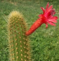 Description: Cleistocactus samaipatanusSN|3762]]SN|3762]] is a long, narrow columnar cactus with pale gold toothpick-like spines. It grows vigorously with large, bright red to pink-red flowers. The plant found in cultivation are quite variable, and the dissimilarity among seedlings spination and flowers colour may be considerable.