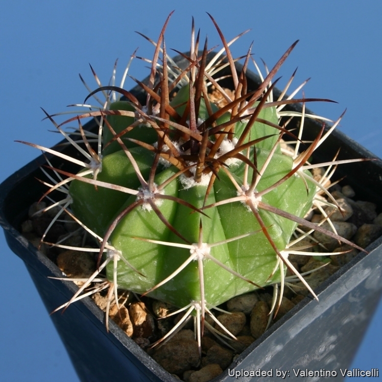 Habit: Usually stay solitary, mature plants are easily recognizable by their cephalia, that have a covering of wool and orange or red bristles, The immature plant looks like a smallish barrel cactus, and there is nothing in its appearance that would suggest a melocactus.