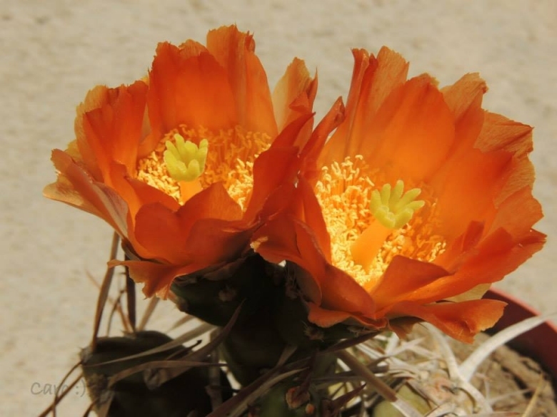 Flowers: Solitary larger than the articulations, and very decorative, dirty yellow-orange 2.5-6 cm in diameter.