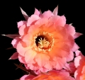 Echinopsis cv. Sierra Skyline: Up to 14 cm across prominently fringed apricot to salmon. Outers mainly light purplish-pink.