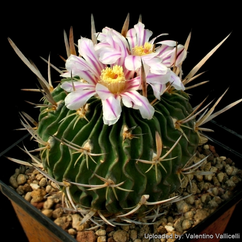 Description: Stenocactus wippermanniiSN|6303]]SN|6303]] (Formerly known as Echinofossulocactus lamellosusSN|6219]]SN|6219]]) is one of the many geographical form of the widespread and morphologically variable Stenocactus crispatusSN|3443]]SN|3443]]. Many of its morphological and geographical variant was early classified as different independent species, but nowadays all this plant are considered part of a multiform species, where each form is linked to others by populations of plants with intermediate characteristics. The name Stenocactus wippermanniiSN|6303]]SN|6303]] is used to indicate plant crowded with long central spines the the upper one of which more or less flat pressed, weakly curved, milky-white with almost blackish-brown base, but similar plants are commonly found in other populations and under other names, and to all intents and purposes it is a synonym of Stenocactus crispatusSN|3443]]SN|3443]]. The plants in cultivation are quite variable. This is one of the Echinofossulocactus with the prettiest spination.