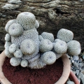 Epithelantha micromeris f. cristata hort.: This is a miniature cactus that makes a nice and tangled cluster of fine crests. The stem surface is completely obscured by small pectinated ashy-grey to white spines.