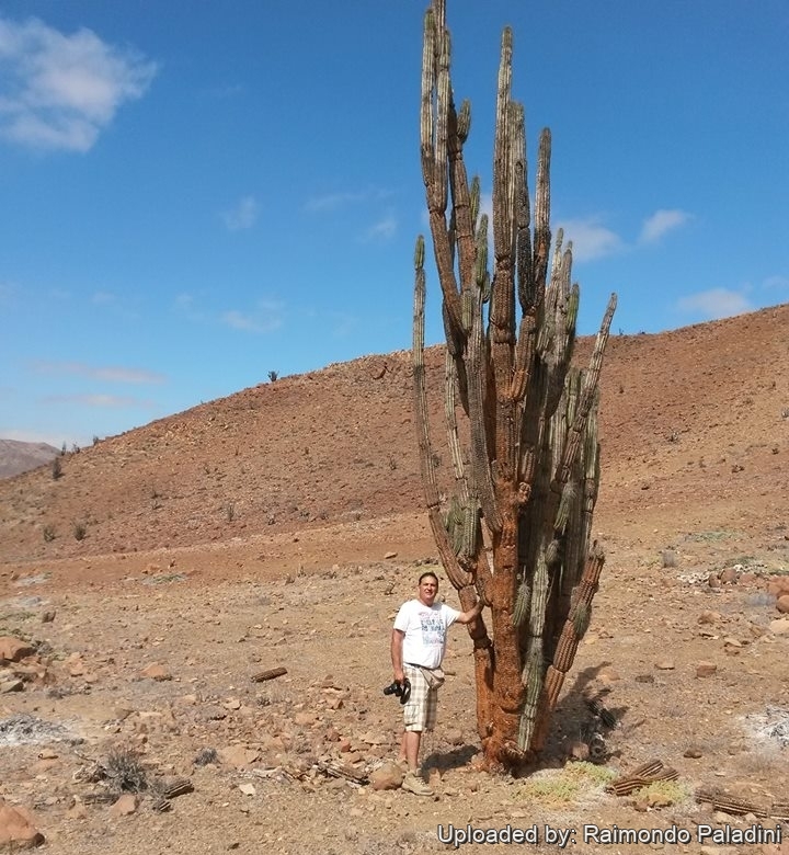 Habitat and Ecology: This species occurs always in coastal areas (lomas costeras) on the coastal range of Chile, and is not found on the pampas, which extend east of the coastal hills to the Andes. It grows in barren areas where rain has not fallen since time immemorial and it is the most conspicuous plant seen, in fact it is the only woody plant met within its restricted area. High mortality rates north of Antofagasta, Chile are fragmenting the subpopulations. Most of the large stands of Eulychnia iquiquensisSN|8188]]SN|8188]], the most visible plants in the area, are in terminal decline (due to prolonged droughts) and largely consist of dead individuals with little, if any, seedling regeneration. Furthermore, it is present in several protected areas.