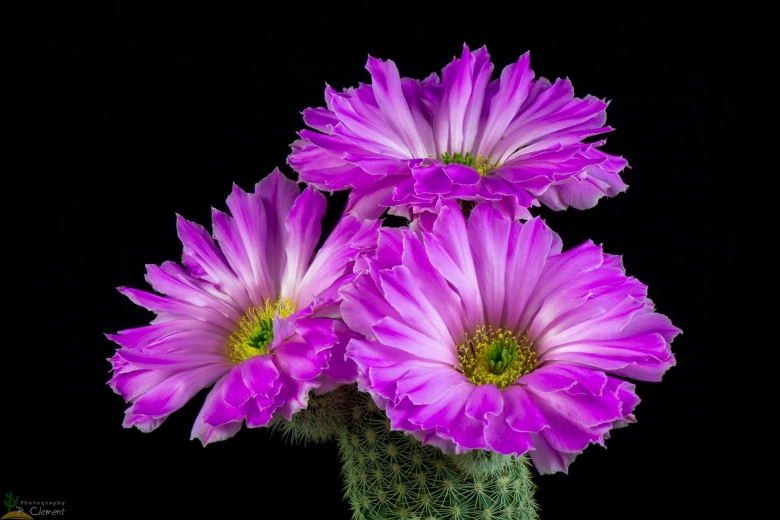 Flower: Bright pink 5 cm long, 7 cm in expansion when fully open occurring down the sides of the plant. Ovary and tube densely spinose. Stigma lobes green. Self sterile.