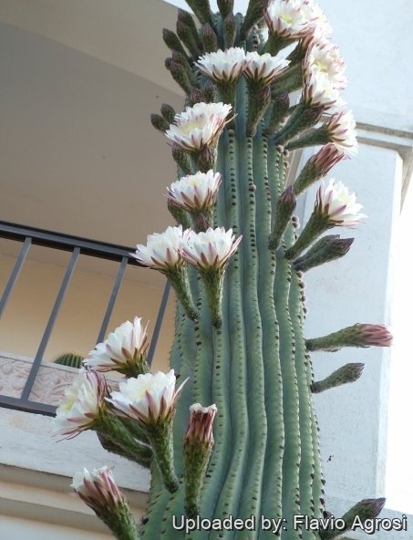 Description: Echinopsis terscheckiiSN|6867]]SN|8744]] best known in cultivation as Trichocereus terscheckiiSN|8746]]SN|8746]] is a huge treelike cactus species, called in Argentina cardon grande. At first columnar, and usually in age with numerous large arms, 10 to 12 meters high.