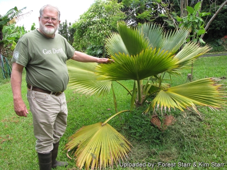 3) Forest & Kim Starr Pritchardia mitiaroana (mitiaro palm). Plants of Hawaii. <http://www.starrenvironmental.com>. Downloaded on 21 August 2014.