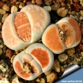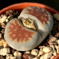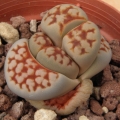 Propagation: Seed or (or rarely) cuttings. The small seeds can be sown in pots of fine, well-drained sand, any time during the spring and summer months when temperatures are warm. Cover the seeds with a very fine layer of grit and water from below with a fungicide to prevent damping off. For the first 3-4 days cover the pots with a sheet of glass/clear perspex to keep the humidity levels high. Remove the glass and replace it with light shadecloth and mist once or twice a day for the next two weeks after which most seeds should have germinated. From then on mistings can be reduced to every second and then every third day as the little plants grow. Take the cuttings from a grown-up mother plant. Each cutting must contain one or more heads along with a fraction of root and permit them to dry out a couple of days, lay the cuttings on the soil and insert the stem end partially into the soil. Try to keep the cutting somewhat upright so that the roots are able to grow downward. It is relatively difficult to root Lithops from cuttings and generally pointless as well, so quick are they from seed.