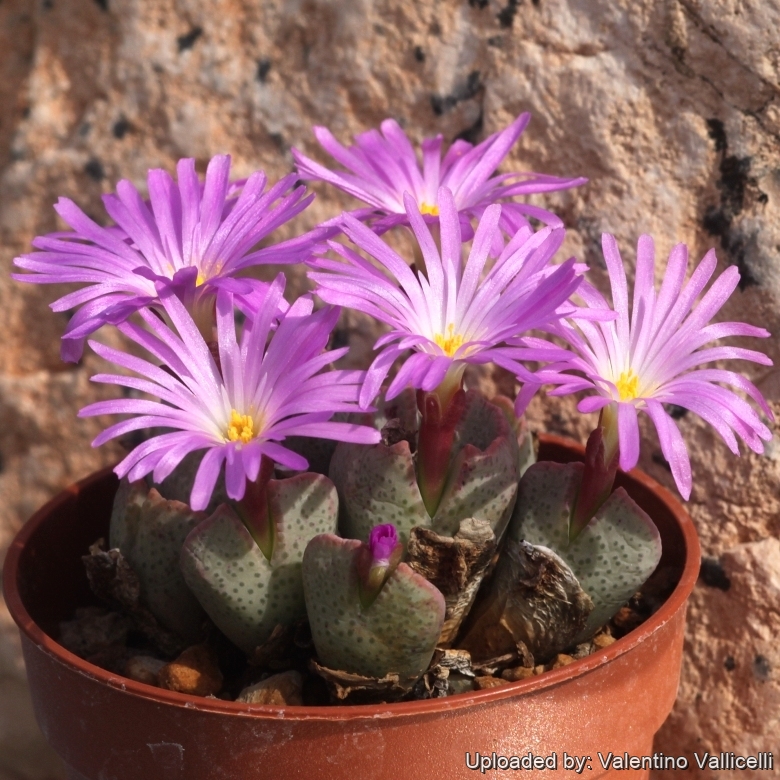 Description: Conophytum taylorianumSN|17869]]SN|17869]] subs. ernianum is a dwarf, rock-like, perennial succulent forming a large dimpled mat less than 4 cm tall and producing an abundance of flowers every year during the latter part of the summer.