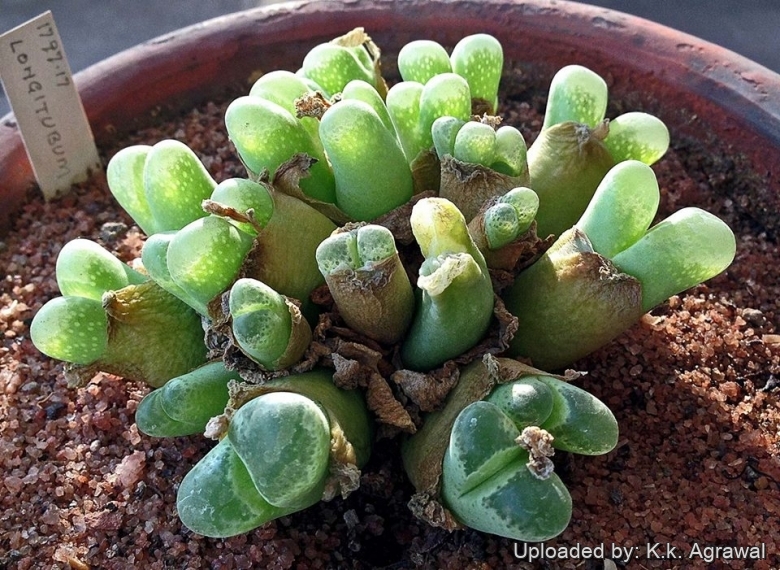 Propagation: It can be reproduced both by seed in autumn or (or rarely) cuttings. Take the cutting from a grown-up mother plant. Each cutting must contain one or more heads along with a fraction of root and permit to dry out a couple of days, lay it on the soil and insert the stem end partially into the soil. Try to keep the cutting somewhat upright so that the roots are able to grow downward. It is relatively difficult to root Ophthalmophyllum from cuttings and generally pointless as well, so quick are they from seed.