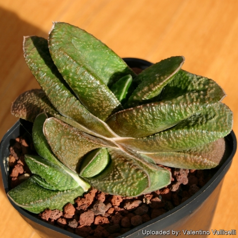 It is one of the slow growing and rarer Gasterias with dark green leaves. It contains some of the most handsome individual clones of any species.