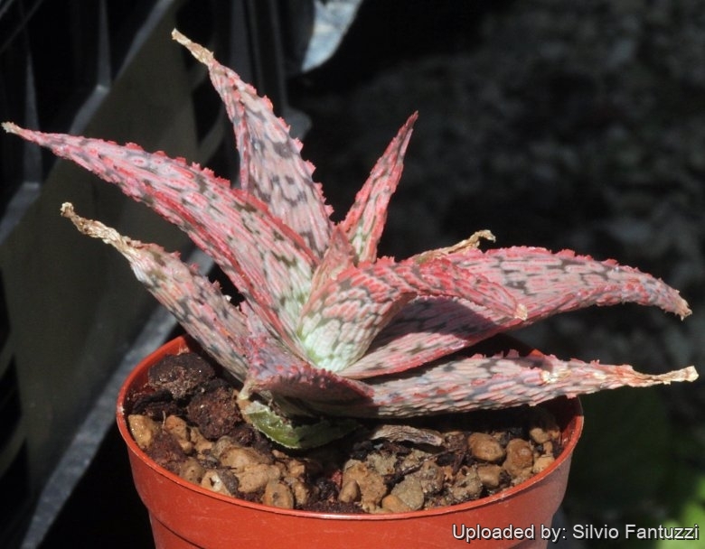 Description: Pink Blush is one of the larger of Kelly’s miniature Aloe hybrids, although still relatively small it can grow 30 cm tall by 15-25 cm wide. It clumps profusely. It is quite similar to John Bleck's hybrid "Lizard Lips". Lizard Lips has thinner leaves with white patterns, without the neon highlights. Its unusual multicoloured foliage makes it a truly unique container plant that looks like an impressionist painting.