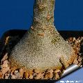 Description: Adenium obesumSN|116]]SN|116]] subs. socotranum (Adenium socotranumSN|119]]SN|129]]) of the periwinkle family, Apocinaceae, is the giant of the genus, forming a massive conical trunk/caudex several metres tall and up to 2.4 m in diameter, the whole plant up to 3,5 meter in height. It resembles a miniature baobab with surrealistic forms. Some turn into tall trees while some may grow with their swollen bases more flat on the soil. This species - virtually unknown in cultivation - is frequently indicated to be a winter grower but the few plant observed in European collection are in leaf only during the summer months, leafing out even later than Adenium boehmianumSN|111]]SN|106]].