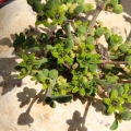 Flowers: Inflorescences lateral, almost from each node, sometimes also between upper leaf-axils, on short stout stalk, densely many-flowered, ± globular. The flowers are deciduous, pale green star-shaped with a purple centre, Ø 9 mm. Peduncle 1-2 mm long. Corolla lobes reflexed, narrowly triangular, about 5 mm long, densely hairy below, hairless above.