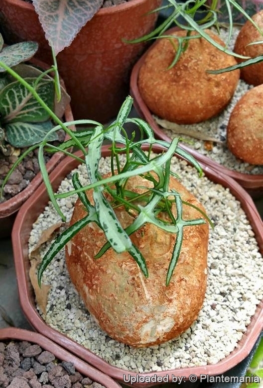 Manteinance: Repot every two years. It like pots with generous drain holes. In the winter, the vining branches die back and should be cut back to encourage branching, to maintain an attractive shape and to ensure caudex habit.